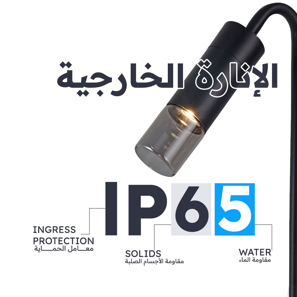 فيجب دائماً أن تختار كشافات إنارة تعلو IP65 لتقاوم مياه الأمطار والري والغبار والأتربة التي ستتعرض لها.
