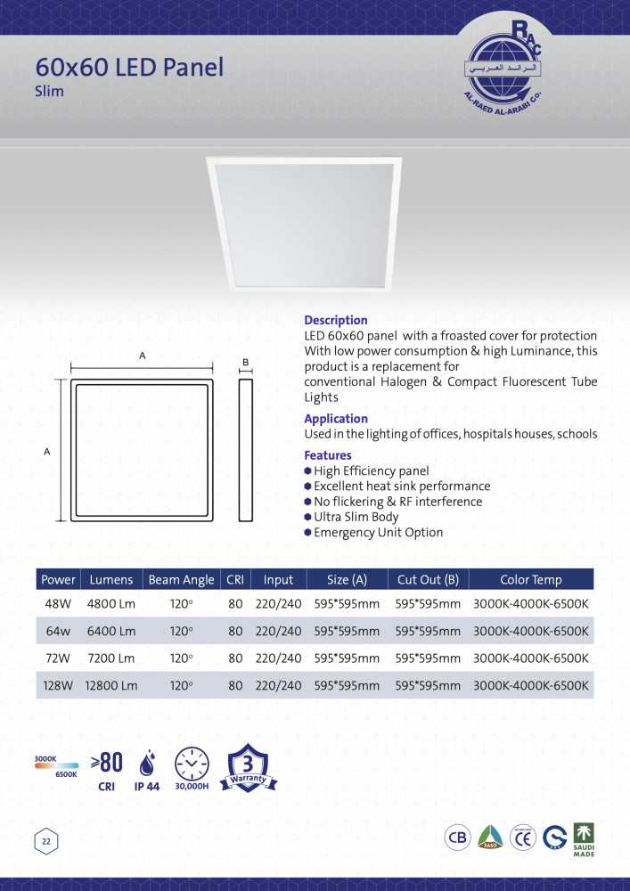 لوحة LED مقاس 60x60 مع غطاء متجمد للحماية