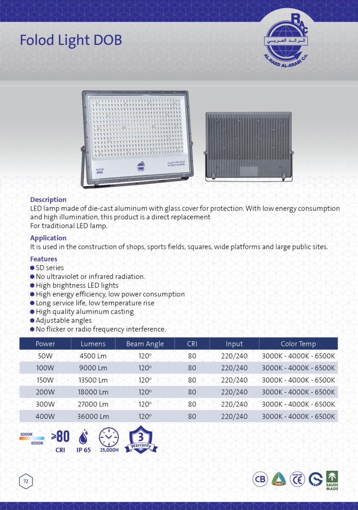 LED Floodlight made of die-cast aluminum with glass cover for protection. Withlow