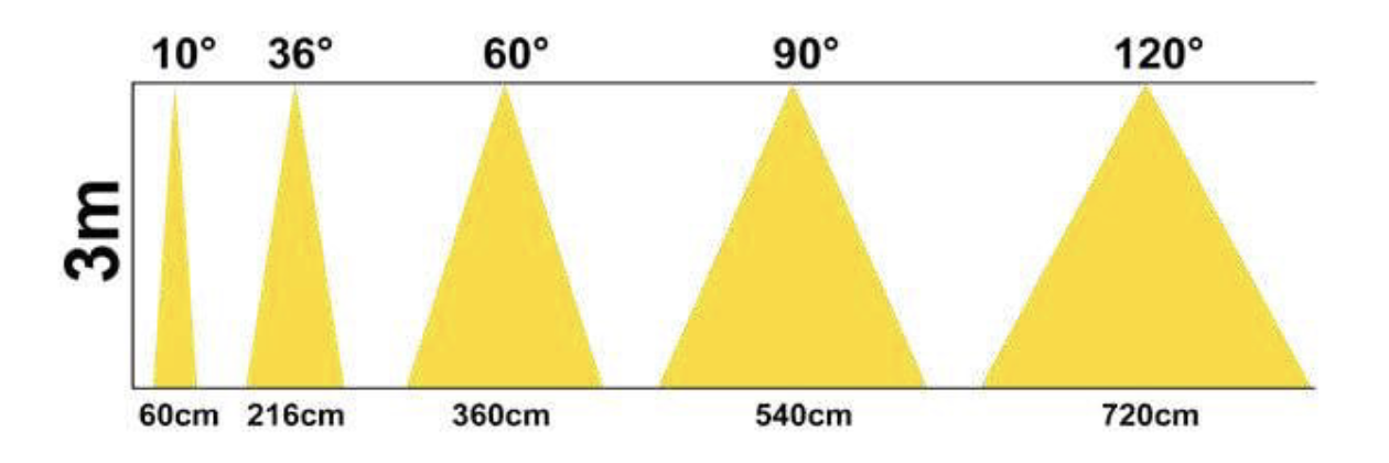 It is the angle of light emission from the lighting source and is the main factor in determining the use of the lighting source. Lighting sources with a small angle are used as focused lighting, while lighting sources with a large angle are used as general lighting.
